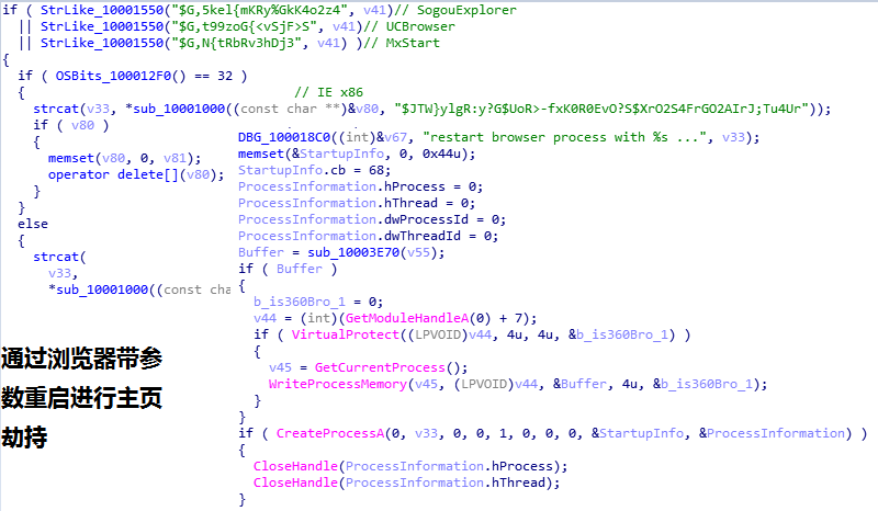 通过带参数重启方式替换浏览器默认主页,实际的被劫持列表还包括上文的配置信息中所列数据。