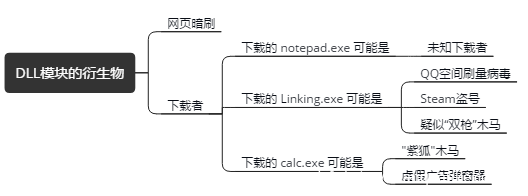 以32位DLL模块为例,模块启动通过判断当前进程名称执行不同的逻辑,其功能如下图所示: