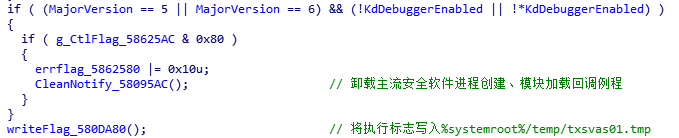 同时,该驱动支持在低版本的系统上卸载主流安全软件的进程创建、模块加载回调例程,至此,程序的入口函数结束: