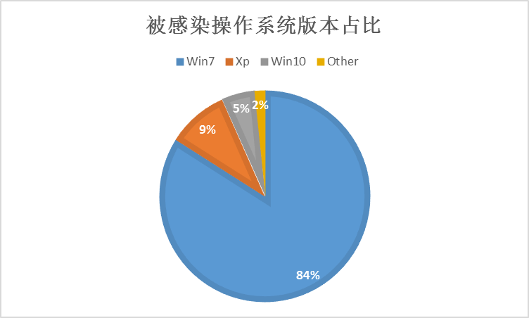 在被感染的机器中,有84%的系统为Win7系统。这一方面是因为目前市面上Win7系统使用量占比仍比较高,另一方面也是因为在Win7系统上使用激活工具的情况也相对多一些(当前的Win10系统多为新电脑预装正版,不需要用户自行激活)——这也就给木马利用虚假的系统激活工具传播留下了更大的可乘之机。