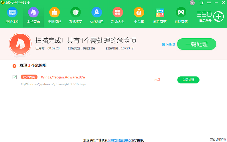 - 如果使用了激活工具或安装了Ghost系统后出现异常状况,可使用360急救箱进行检查。