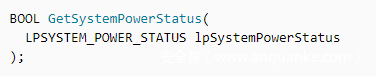 该变种会调用GetSystemPowerStatus函数,检查主机是否连接到物理的AC电源。该函数的定义如下:
