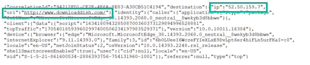 接下来,DealPly会使用来自C&C的指令向SmartScreen API发起请求。在图9中,我们可以看到发往https://urs.smartscreen.microsoft.com/windows/browser/edge/service/navigate的JSON数据: