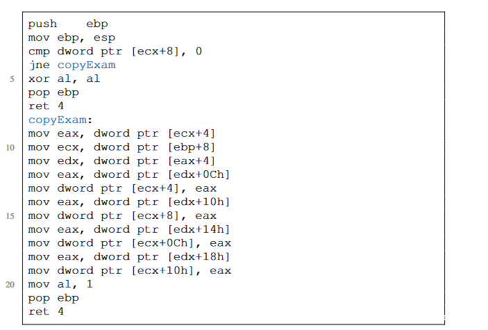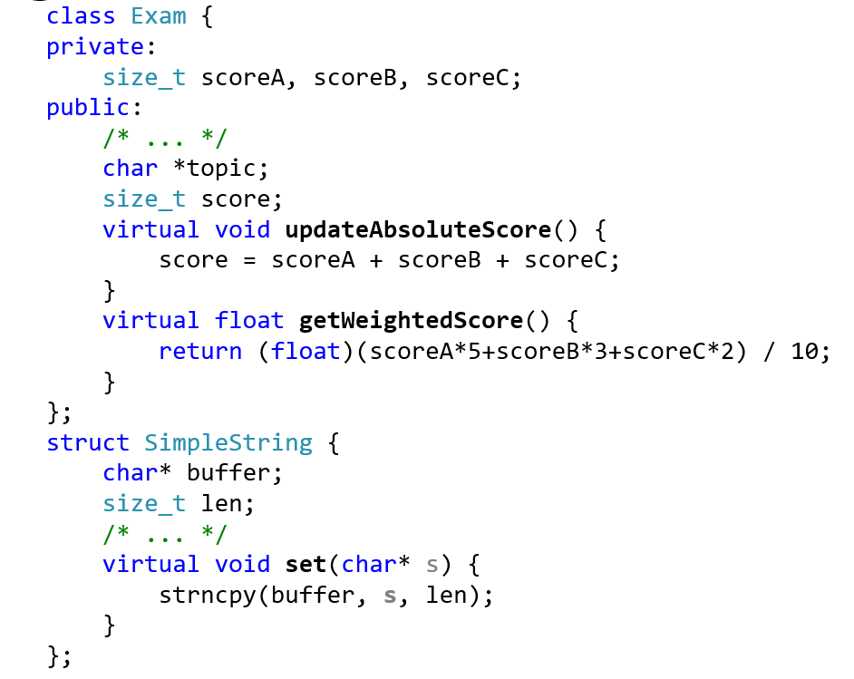 为了更好地理解COOP攻击模式,在介绍COOP具体攻击实施步骤时,将会使用简单的代码来进行介绍,主要涉及以下几个类:Student、Course和Exam。