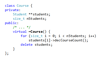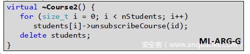 ML-G是包含有以指向伪造对象指针为循环变量的循环的虚函数,比如前述Course类中的˜Course函数: