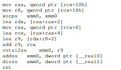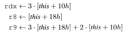 windows x64平台下函数的前四个参数由rcx,rdx,r8和r9四个寄存器来传递,更多的参数则通过栈来传递。特别的,对于C++程序来说,this指针通过rcx寄存器来传递。其他三个寄存器通常会作为临时寄存器使用。考虑下列64位下读取参数寄存器vfgadget: