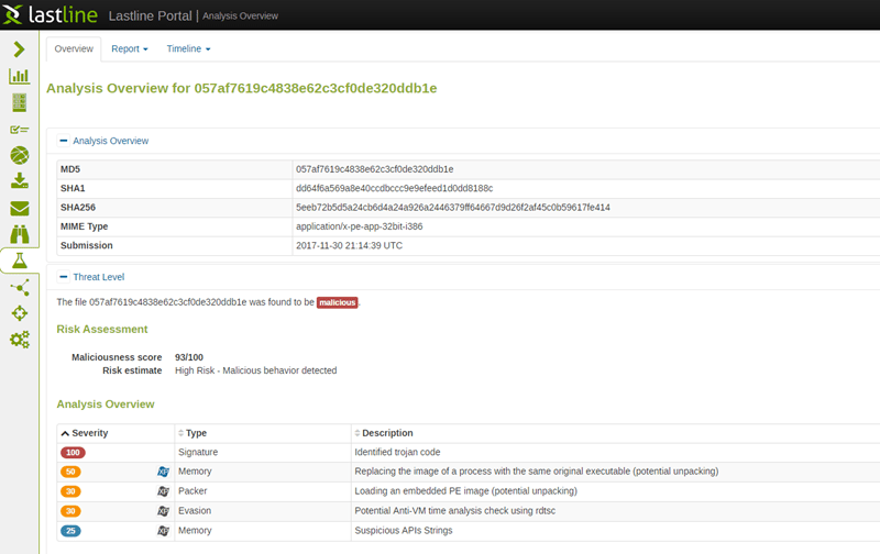 虽然这种利用方法非常有效,但这个样本在利用过程中貌似出现了一个bug,导致最终载荷无法成功执行。这是因为攻击者使用的是Powershell的“Start”命令来执行可执行文件,但忘了加上“.exe”文件扩展名。由于Powershell的“Start”命令使用的是ShellExecute这个API来查找与目标文件扩展名匹配的打开方式,因此导致攻击载荷无法成功执行。因此,我们无法在动态环境中看到最终载荷,然而我们的沙盒分析环境可以正确识别出攻击过程中的具体步骤及异常现象,将相关程序标记为恶意程序,如下图所示。
