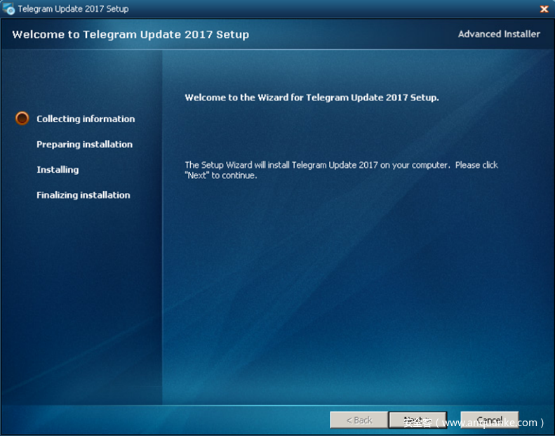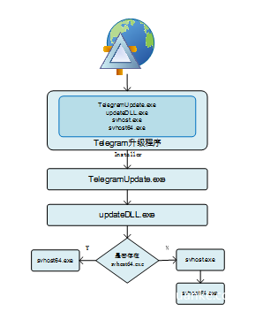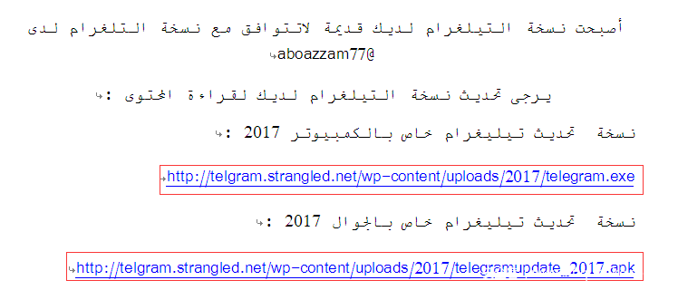 攻击者不仅对恶意程序文件名、图标进行伪装,而且还会针对某些恶意更新程序(如telegram.exe,telegram是叙利亚一个比较流行的通讯软件)伪装其正常更新页面。当点击该恶意程序时,弹出正常的软件更新页面以迷惑用户,从而隐藏其层层释放恶意RAT的行为,普通用户很难辨别出此类软件恶意行为。图11为某一恶意程序运行的截图。