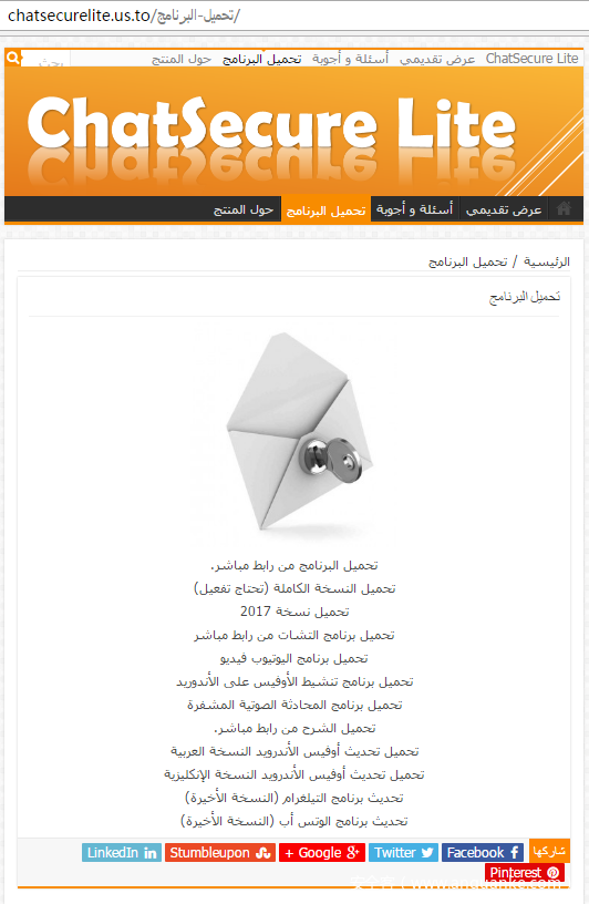 图2为攻击者钓鱼页面(chatsecurelite.us.to/تحميل-البرنامج/)。
