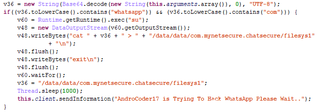 4)依据云端指令盗取用户手机中WhatsApp、Viber等软件的数据。
