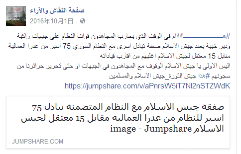 | 3f00799368f029c38cea4a1a56389ab7 | صفقة جيش الاسلام مع النظام المتضمنة تبادل 75 اسير للنظام من عدرا العمالية مقابل 15 معتقل لجيش الاسلام image.vbs |