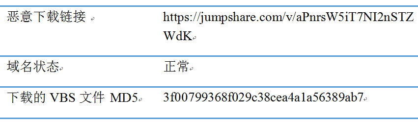 表4 某VBS载荷下载链接和链接对应的VBS文件MD5