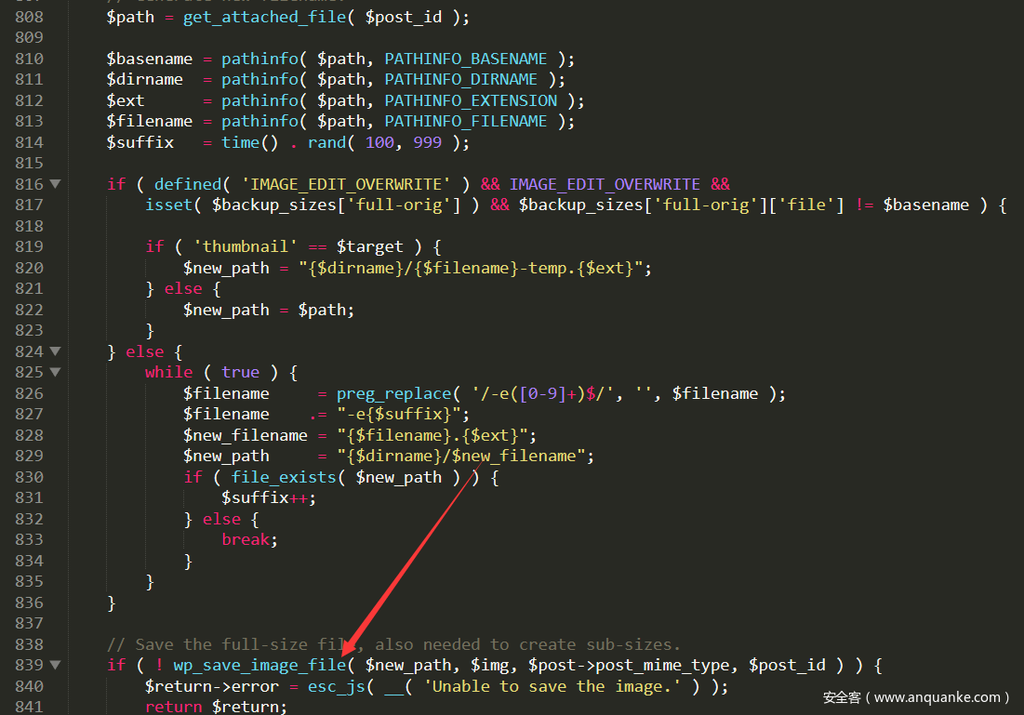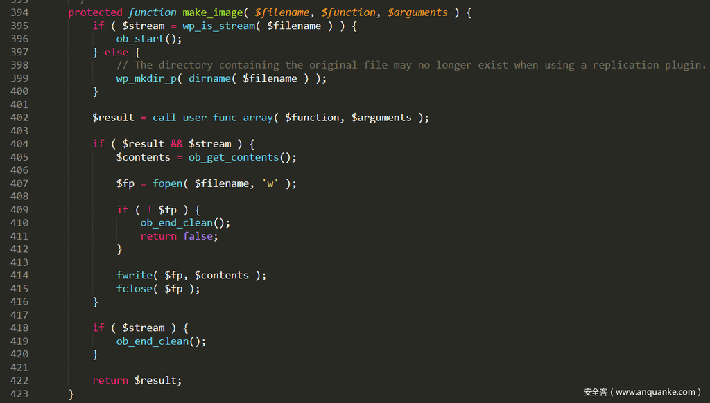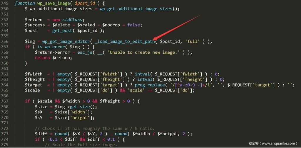 在判断文件不存在的时候会执行_load_image_to_edit_path函数来获取文件名。2019/03/poc.jpg#/../../../../themes/twentyseventeen/poc.jpg明显判断是不存在的,跟进_load_image_to_edit_path函数