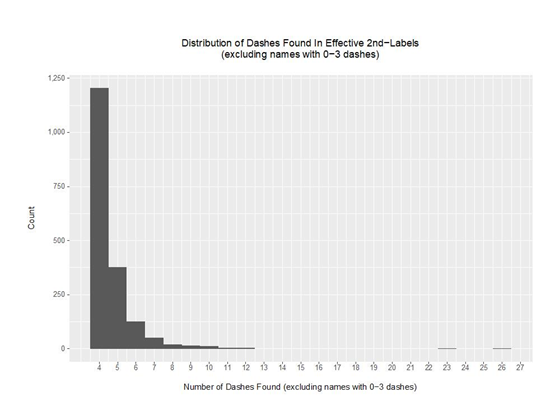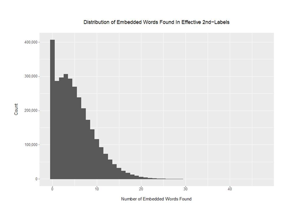 mytitle <- paste("\nDistribution of 2nd-Label Lengths\n", sep = "")