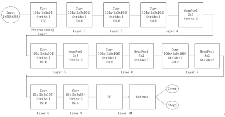 近几年,随着GPU(Graphics Processing Unit)并行计算方式和深度学习的发展,可以模拟手工提取特征的方法从数据本身学习隐写信息。
