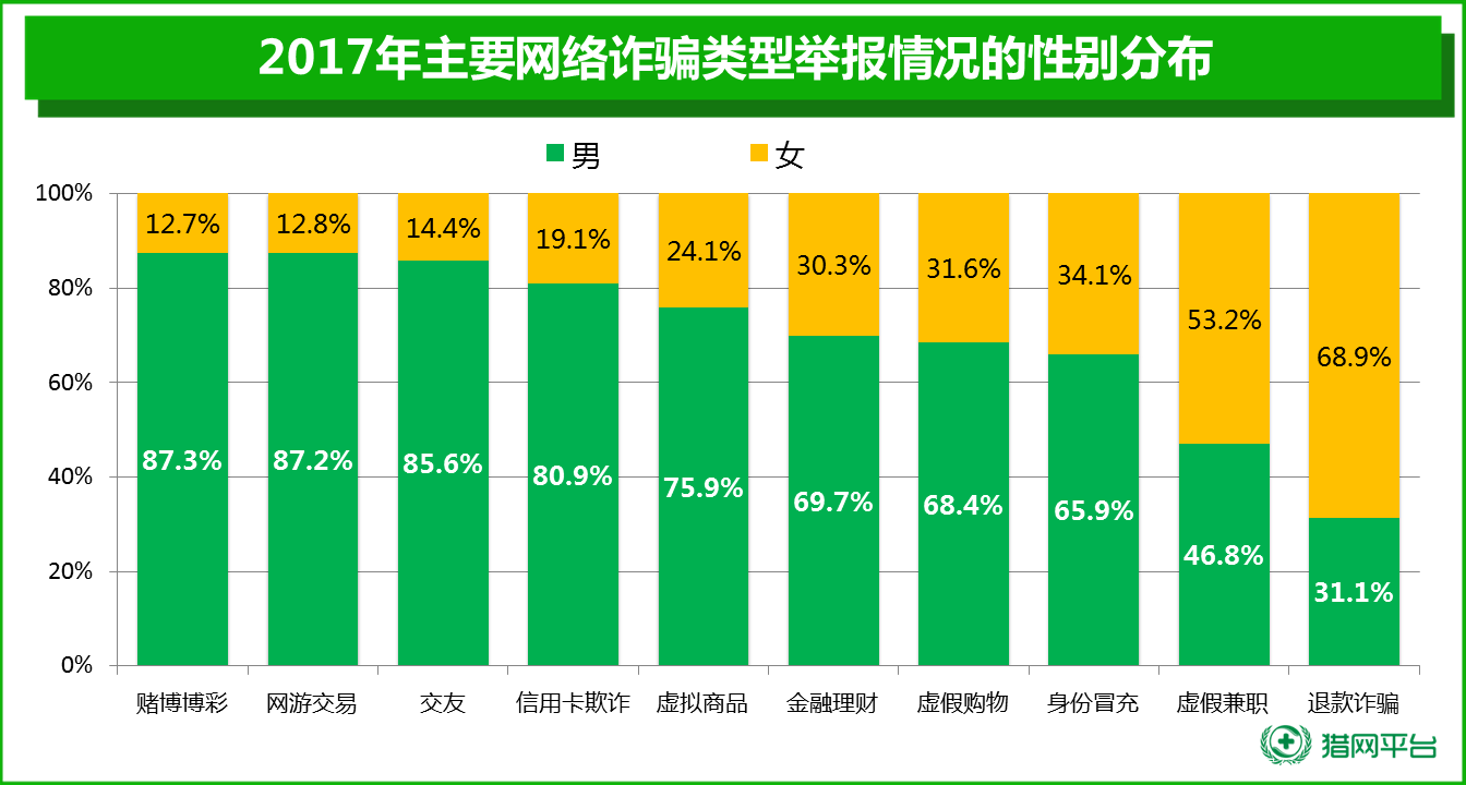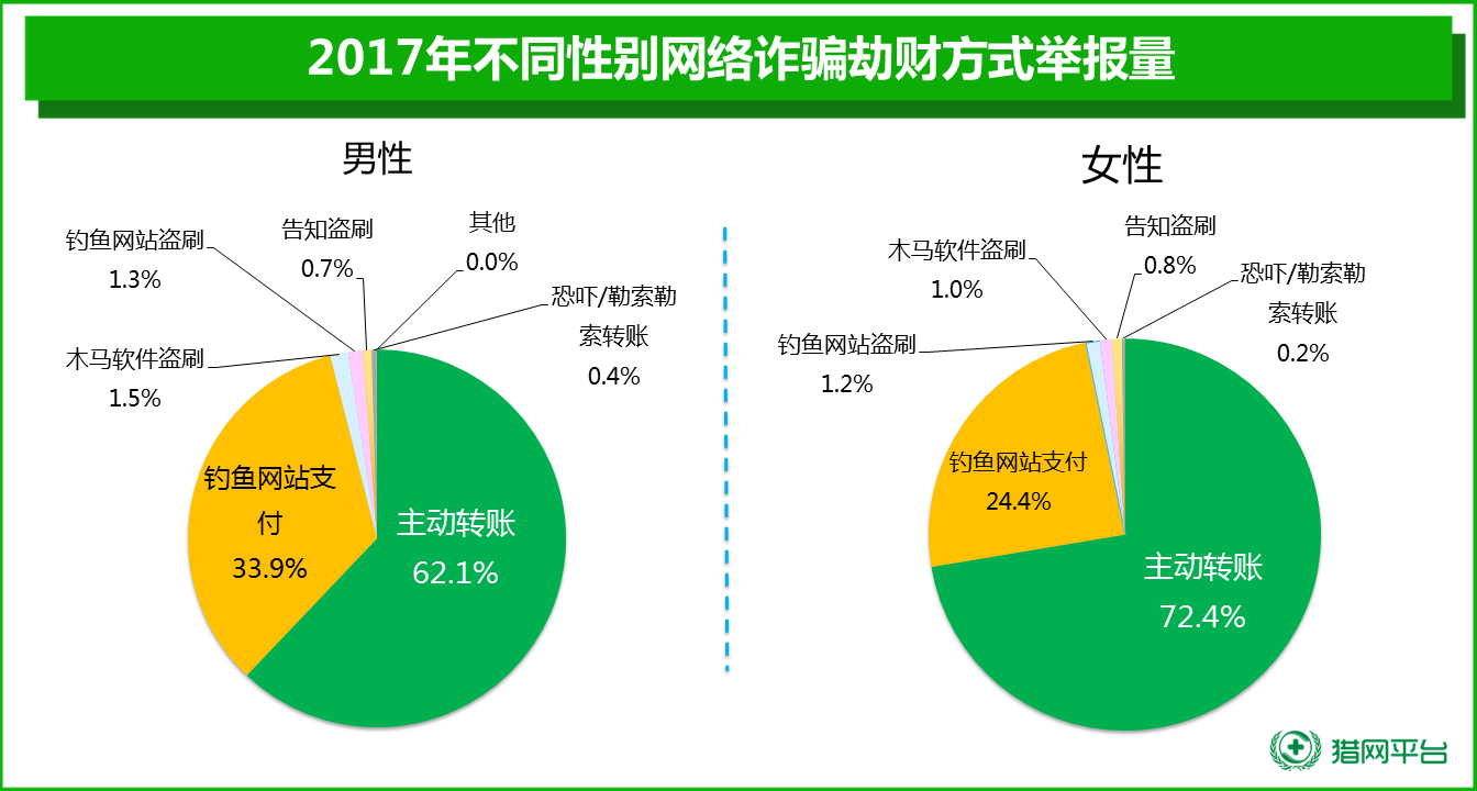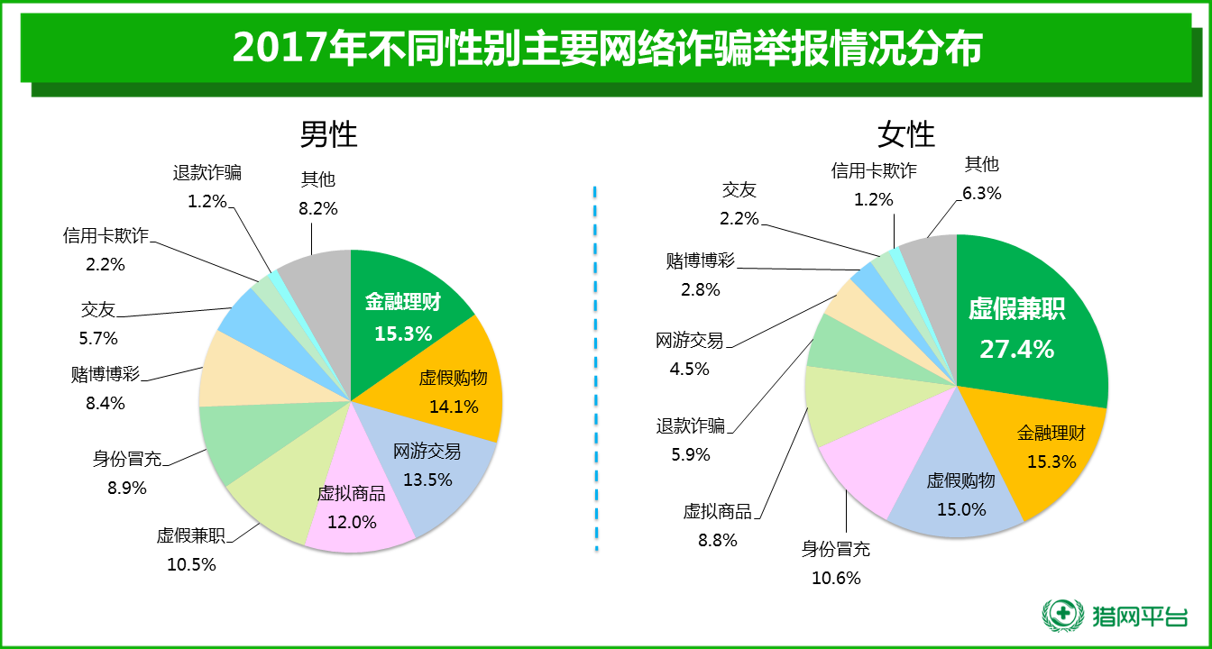 特别值得注意的是,男性和女性在被骗类型方面也有很大的区别。