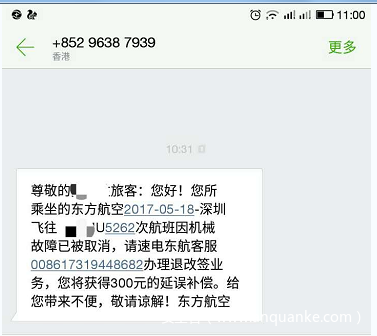 防骗提示:办理机票退、改签业务要找航空、铁路公司或购票商办理,不可轻信陌生短信、电话告知的方式办理。