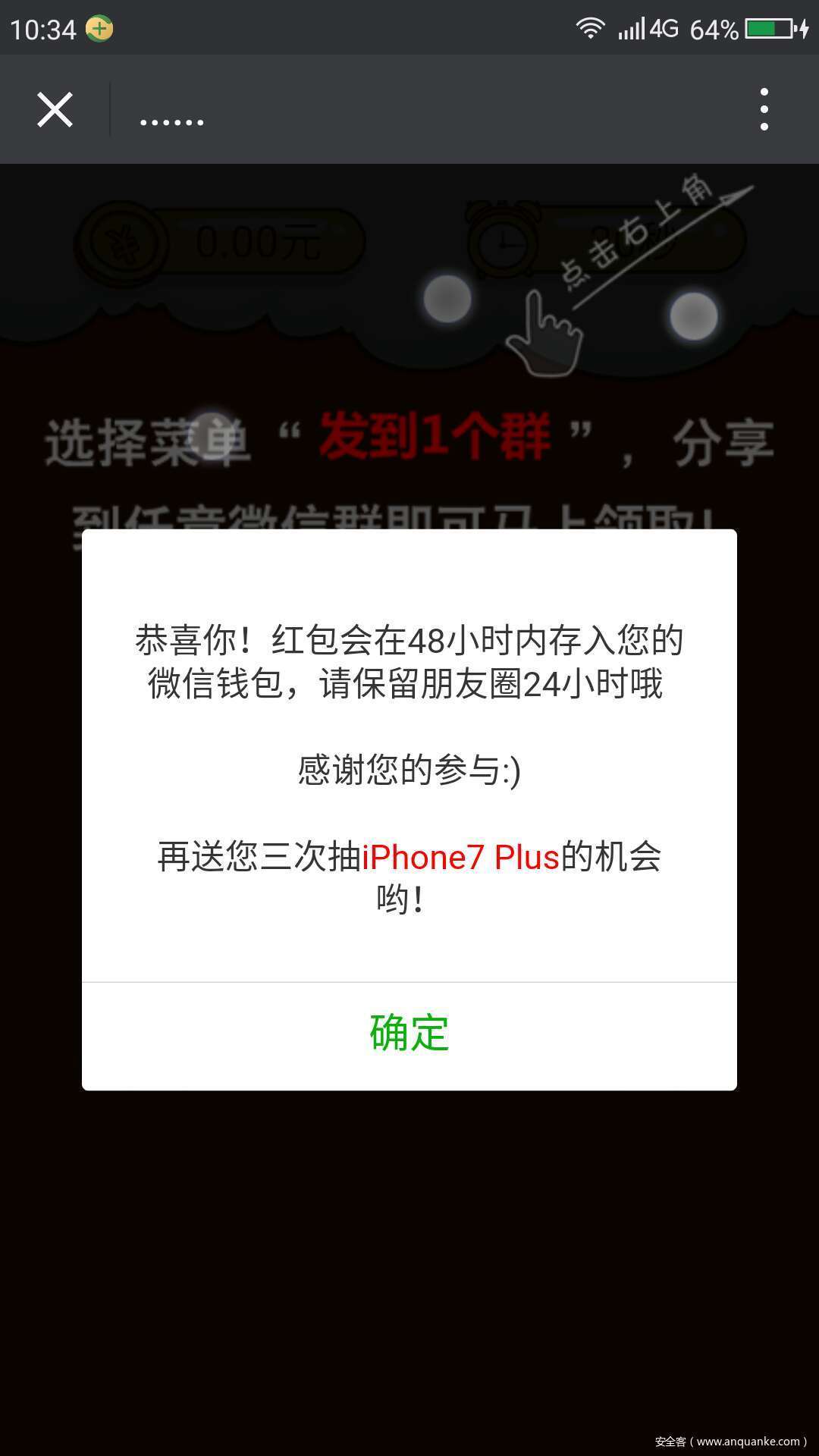 其实这根本不是真的发红包,而是假冒“战狼2”剧组的名义发红包,让广大网友帮他打广告!甚至在点击抽取iPhone 时,又会弹出另一个链接让你填写个人信息领奖,从而造成信息泄露或者再次进行中奖诈骗。其实这种诈骗是有固定模板的,比如10G全国通用流量任性送,任何点击都会收到领取500M甚至1G流量的提示,然后依然是分享到朋友圈才能得到,而之后又是熟悉的抽奖提示。这类诈骗基本上每次换一个热门话题,再PS上新的相关图片就制作完毕,然后就投到朋友圈中进行传播。