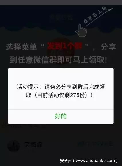 防骗提示:不要随意给陌生人发红包,需要交钱才能进入的群大部分是从事着诈骗、赌博、色情等违法活动,此种群请不要进。