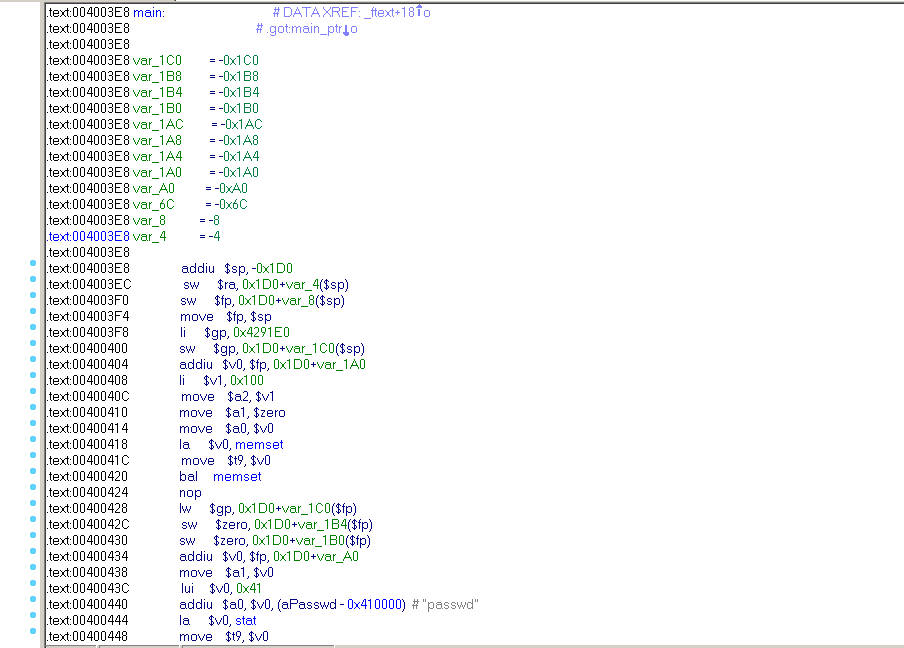 sw $ra, 0x1D0+var_4($sp) //将ra里面的值存放于堆栈里面,其偏移值为0x1D0+var_4