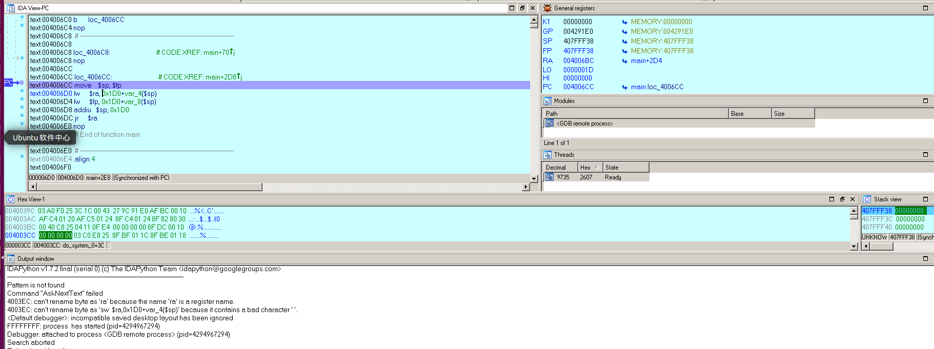 执行完这条指令之后,使用IDA进行附加调试: