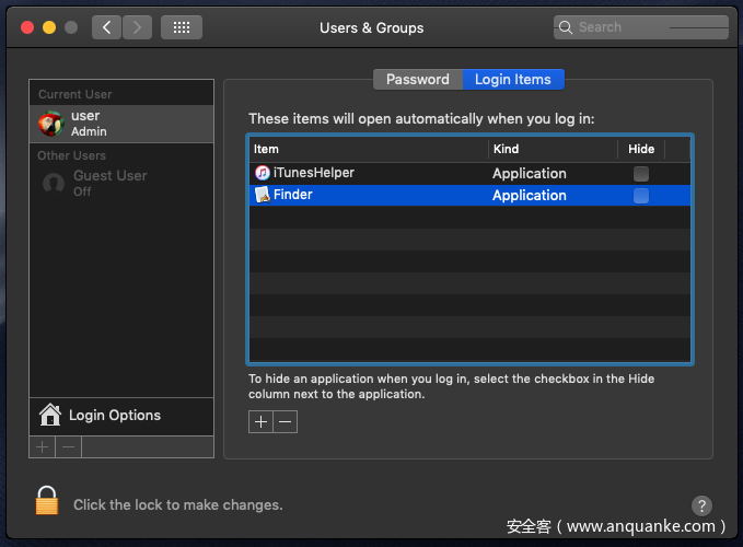 登录项也可以确保恶意软件能被运行。然而登录项会显示在UI界面中,这显然不利于恶意软件实现隐蔽驻留: