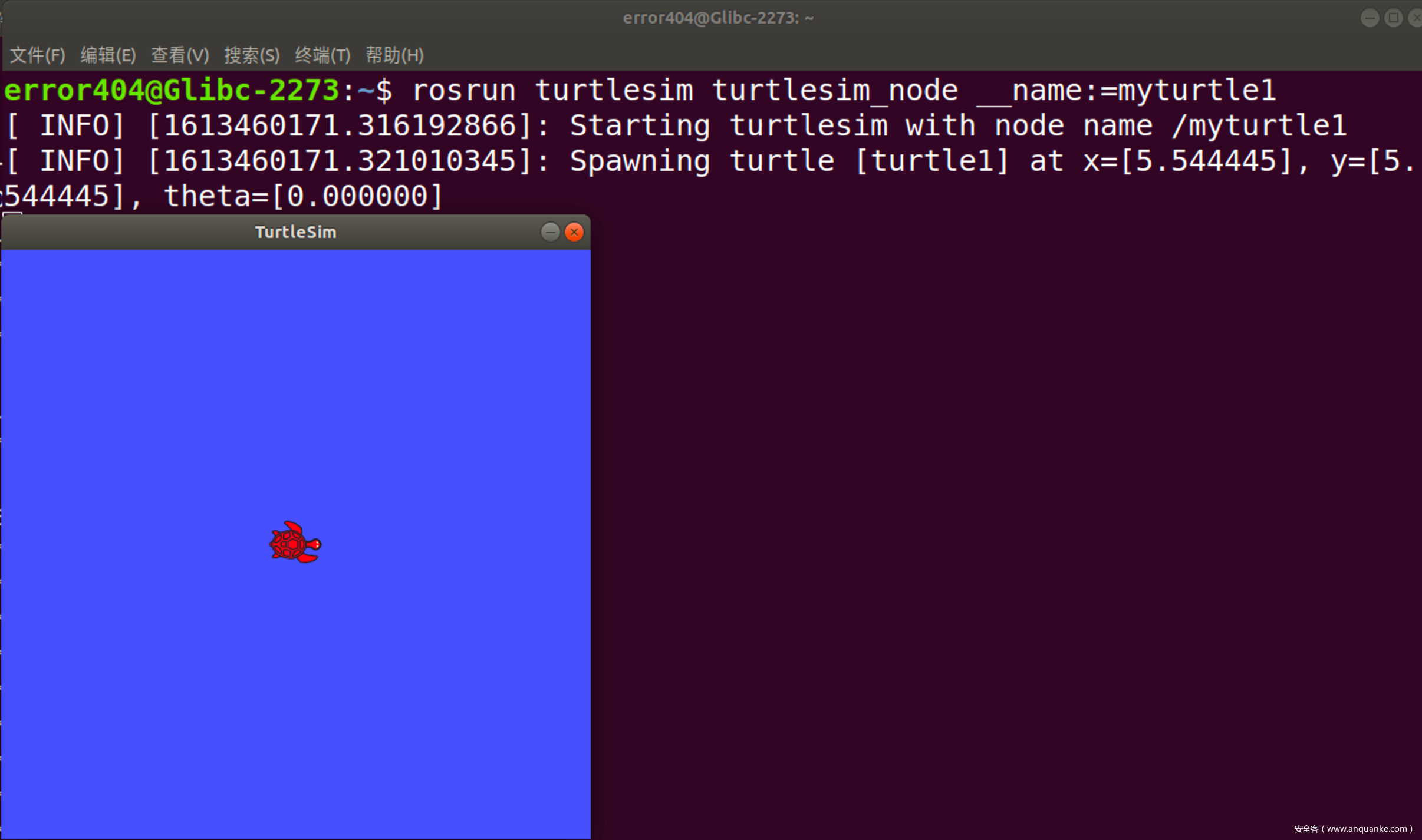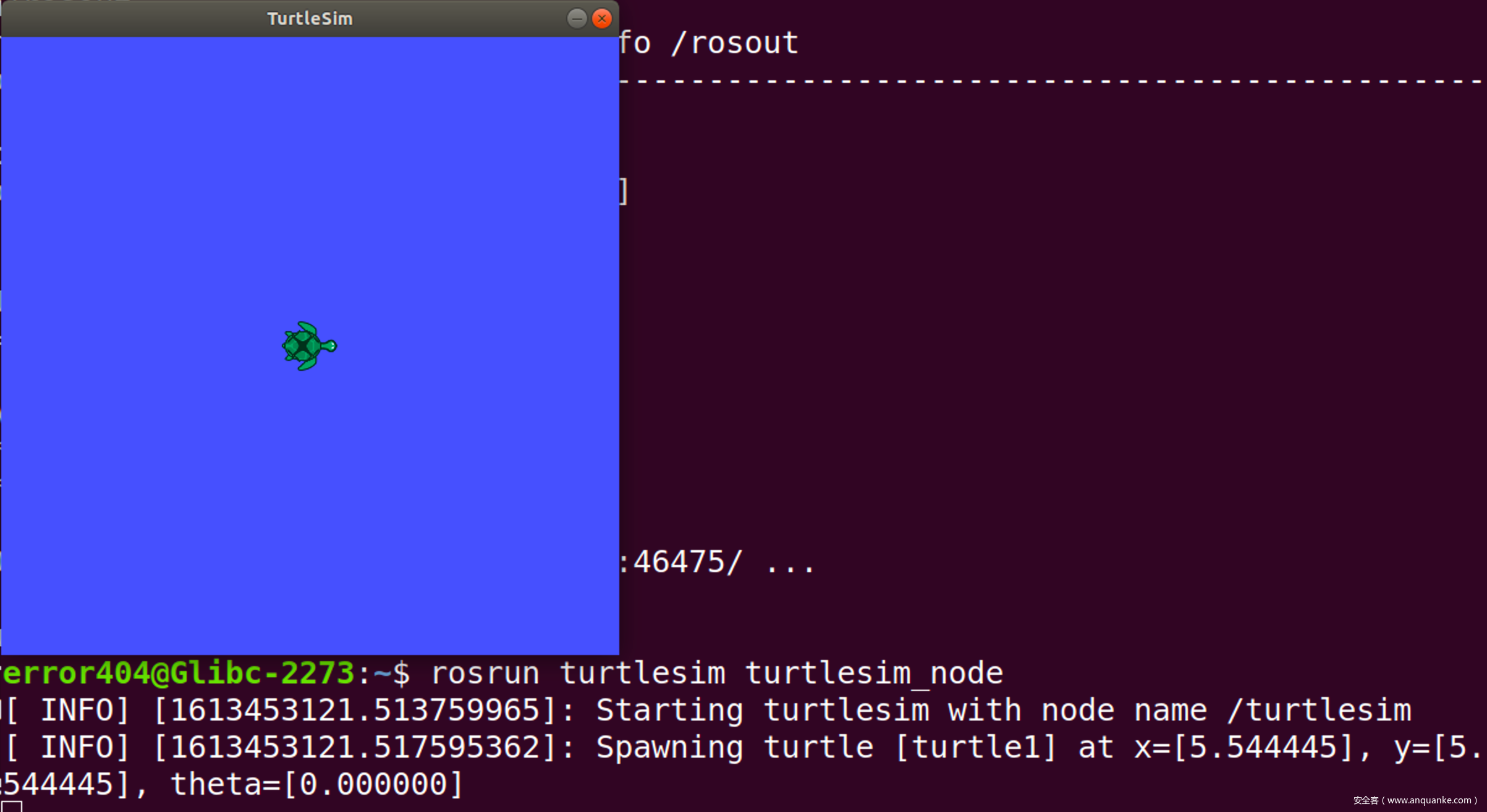 接下来我们使用rosrun turtlesim turtlesim_node命令启动小乌龟节点