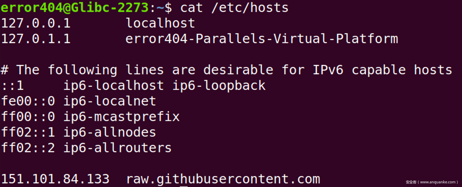 接下来因为要与raw.githubusercontent.com交互获取内容以完成初始化动作,因此需要先对host配置进行修改