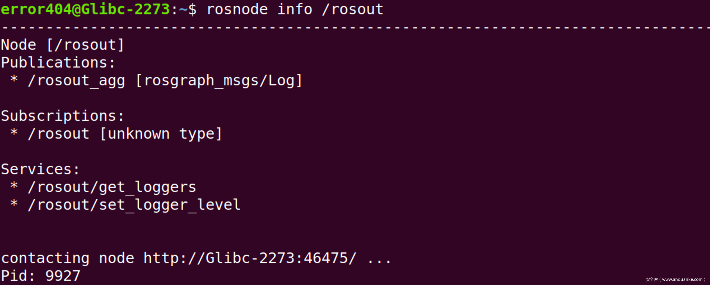 我们可以使用rosnode info命令去看到其所有的订阅者、发布目标以及服务列表,此外,还能看到此节点的位置以及PID。