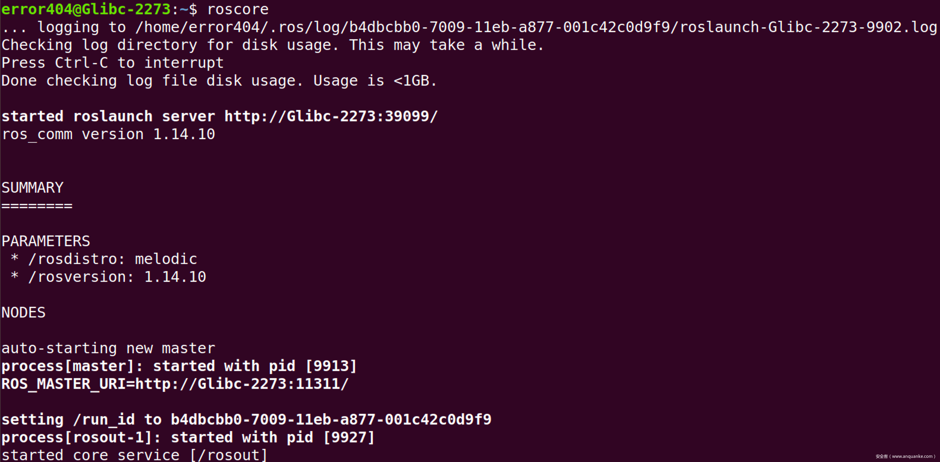 那么,我们需要使用roscore启动一个主服务器以充当master server。