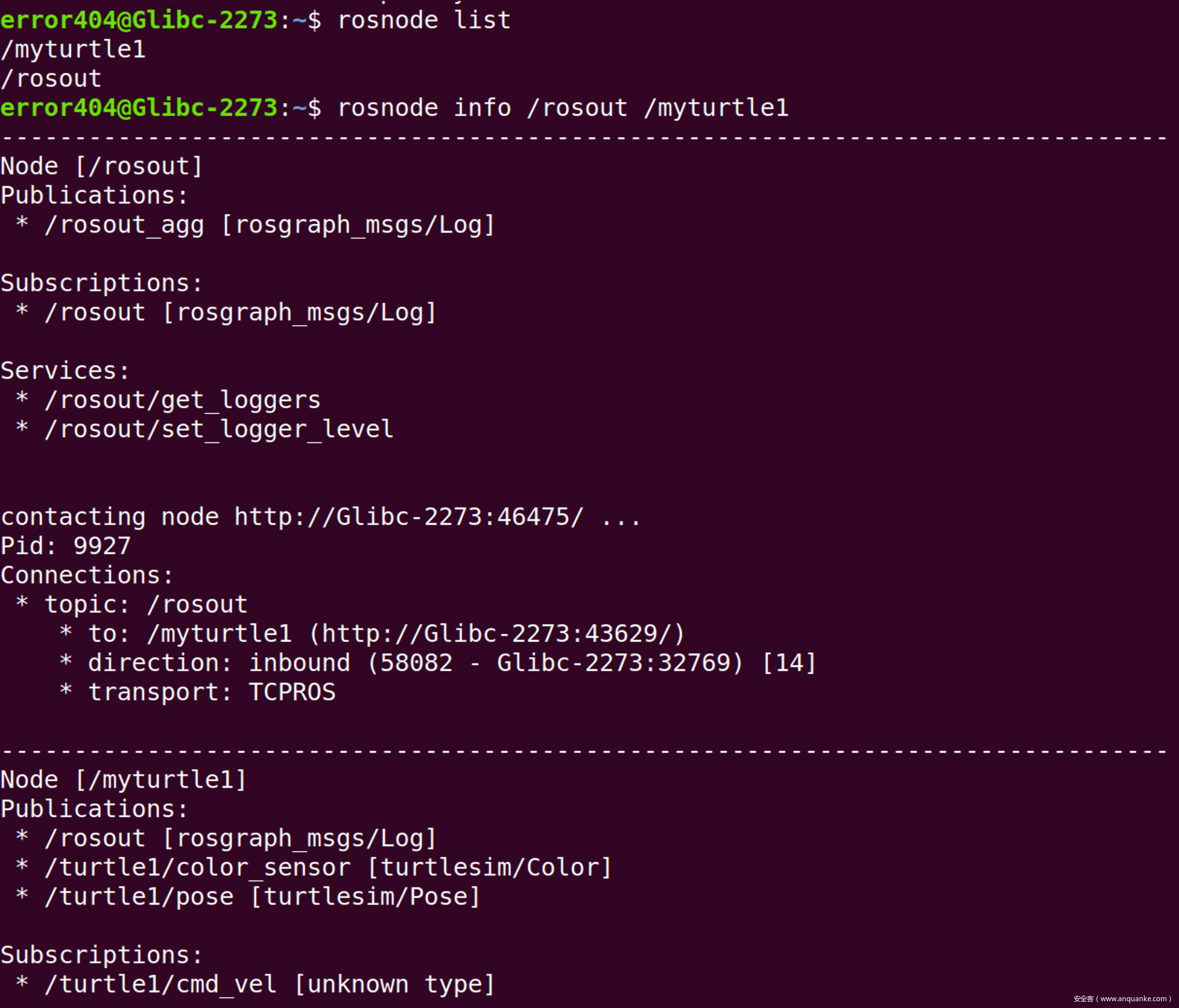 此时或许可以发现,每次启动小乌龟节点时,小乌龟的皮肤都不相同,我们重新使用rosnode命令观察节点