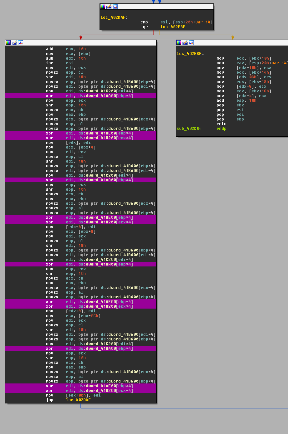 对于许多恶意软件家族而言,在解密它们所使用的C2信令数据时,解开所使用的指令往往是非常简单的工作。这款工具的开发者选择使用自定义的加密方案,使得每次运行时生成的都是随机化的信令数据(只有长度值及C2命令保持不变),增大加密协议实现方式的复杂度及碎片化程度。