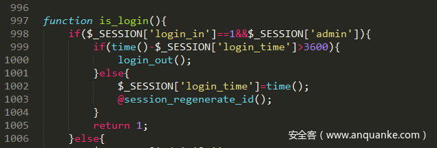 在admin/init.php中第54行发现判断函数is_login():
