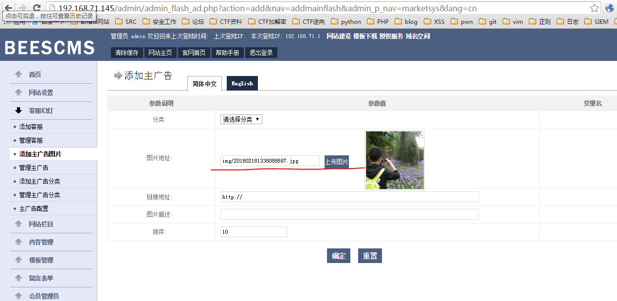 在后台发现有图片上传的地方,并且可以返回图片路径:
