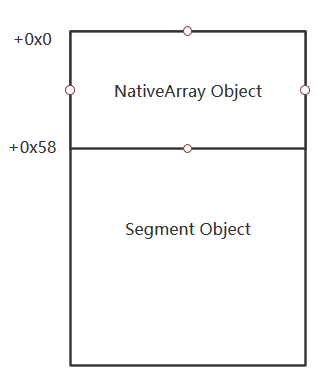 因为此时arr[0]中的指针是指向NativeArray头部的,因此需要把arr[0]中的指针加上一个偏移指向segment的buffer,对于64位的ChakraCore来说这个偏移是0x58个字节。还有需要注意的是,0x58是包含了Segment对象头部的一些域的,不是说NativeArray对象的大小就是0x58。(还有需要注意的是array对象并不一定是与segment紧邻的,只有segement较小时才是相邻的)