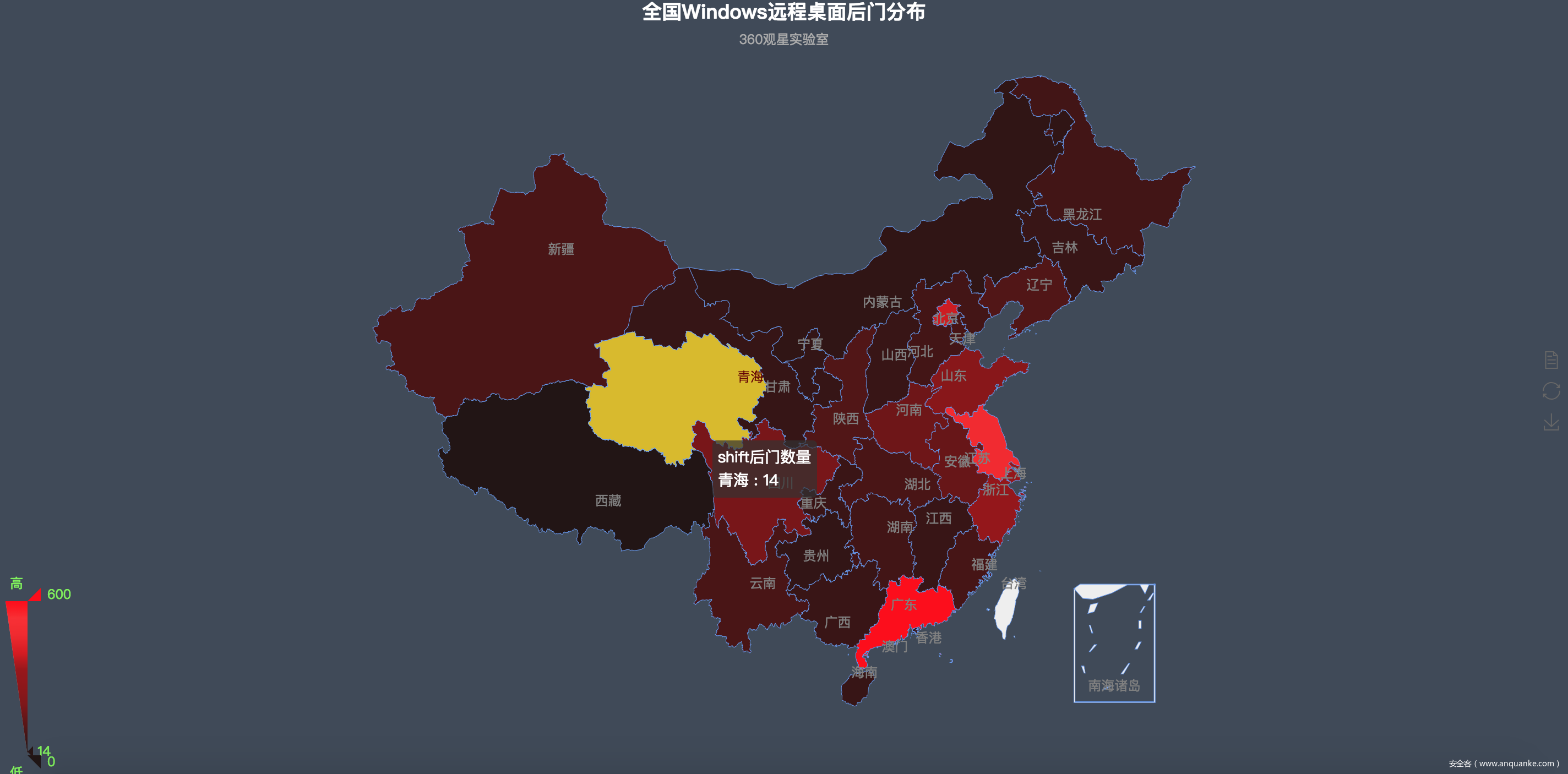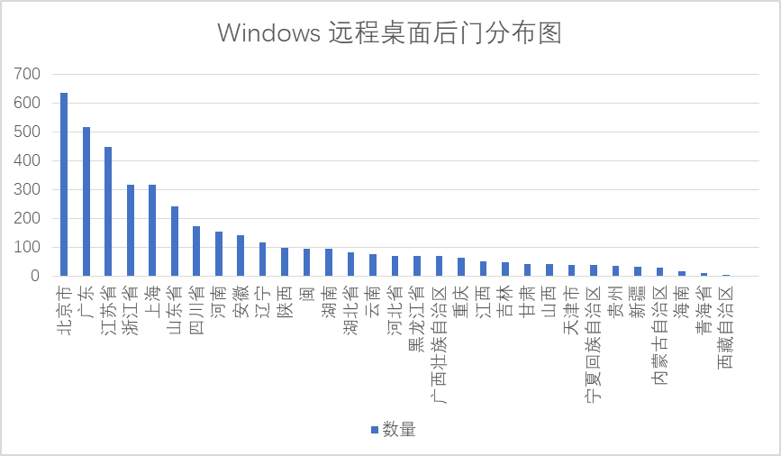 通过对31W开放的Windows远程桌面服务器进行分析识别,发现了4500+ Shift后门,具体的shift后门分布如下: