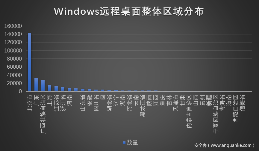 我们对中国互联网侧暴露的130w(数据来源:https://opendata.rapid7.com/sonar.tcp/ )开放3389端口的IP进行了分析,确定Windows开放远程桌面的服务器大约为31W左右,通过对这31W的数据进行了分析研究,得出以下结论: