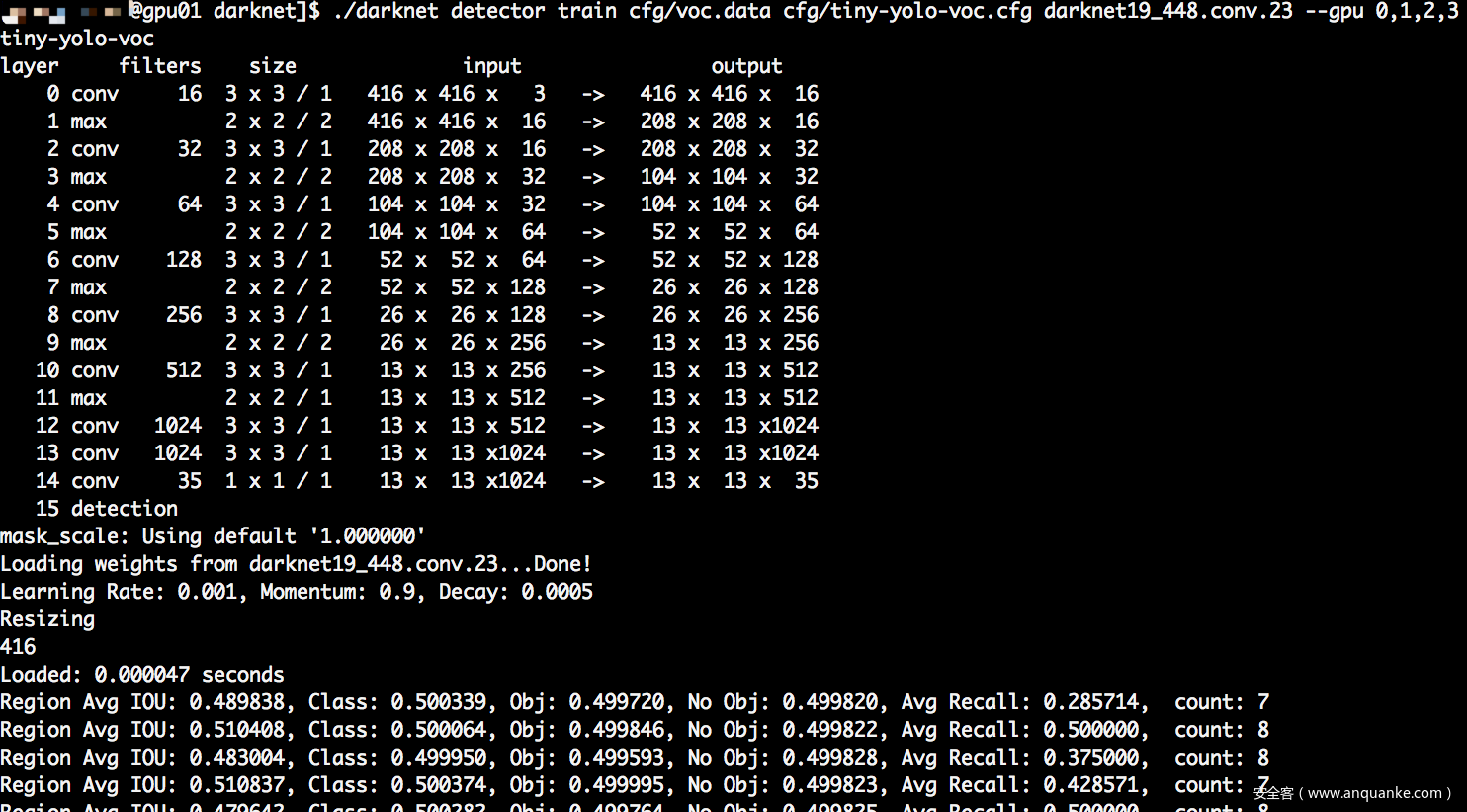 ./darknet detector train cfg/voc.data cfg/tiny-yolo-voc.cfg darknet19_448.conv.23 -gpus 0,1,2,3