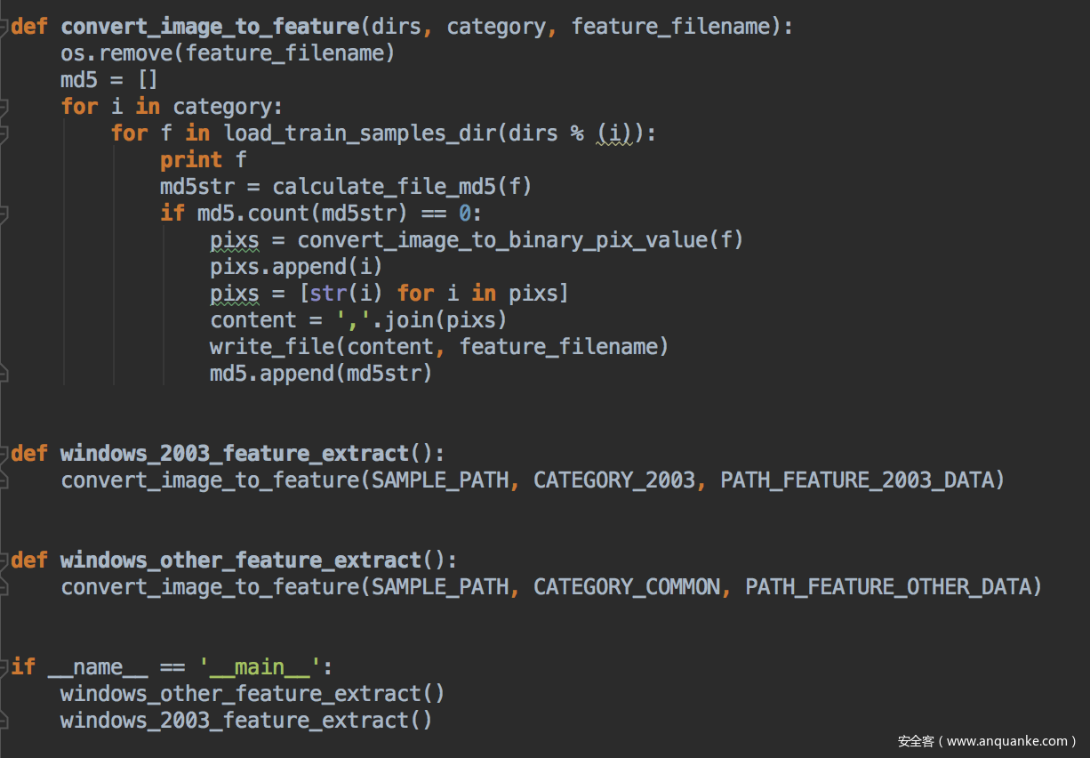 针对2003的系统需要注意下,这里是二分类,需要一些负样本进行训练对应图中的200300和200301,特征提取关键代码如下: