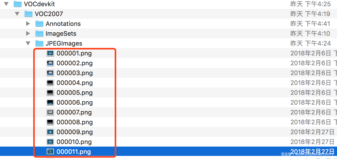 首先我们将shift后门的样本放在JPEGImages目录,按照如下编号进行保存