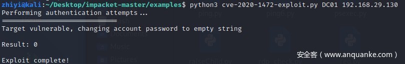 通过上述碰撞方法,攻击者便完成了域身份认证,在接下来的攻击过程用类似的方法也bypass了对call的校验,最后通过相关调用完成对域控密码的修改。值得注意的是由于整个碰撞过程中session key一直是未知的,攻击者可以通过NetrServerAuthenticate3设置合适的flag使得剩下的通信过程不使用session key进行加密。