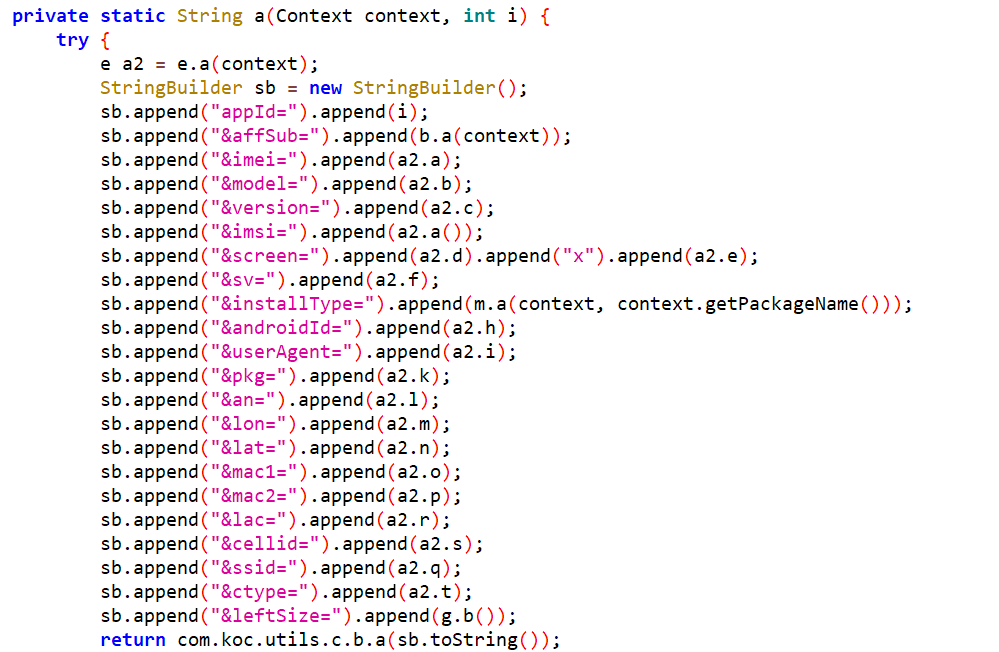 应用程序首先收集有关受害者设备和系统的数据,包括: