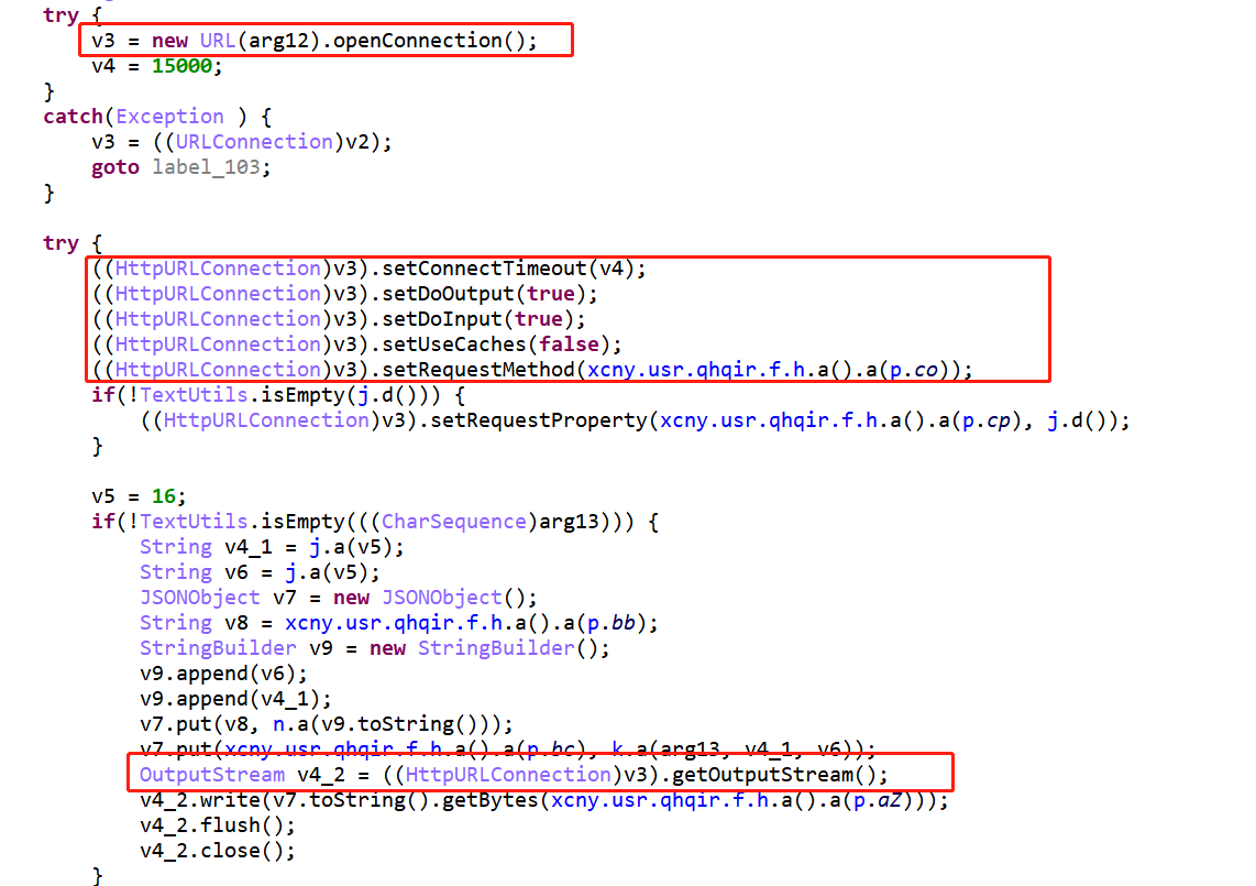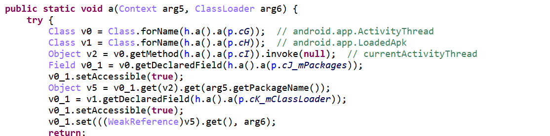 该恶意软件严重的混淆加密了其字符串,所有字符串以及反射调用类名、函数名、参数都使用了复杂的自定义加密算法。