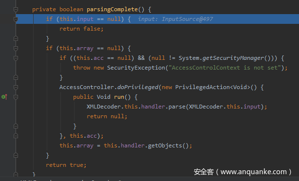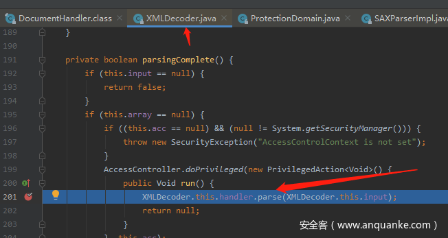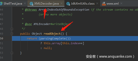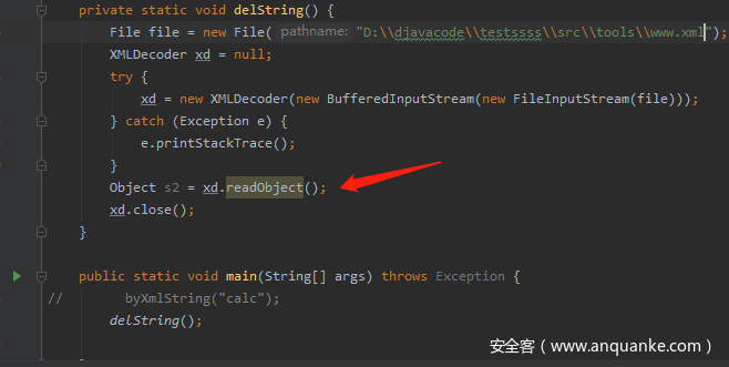 重点在Object s2 = xd.readObject();这行代码,打断点跟一下源码。