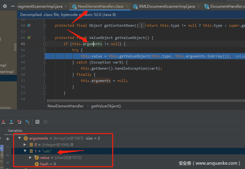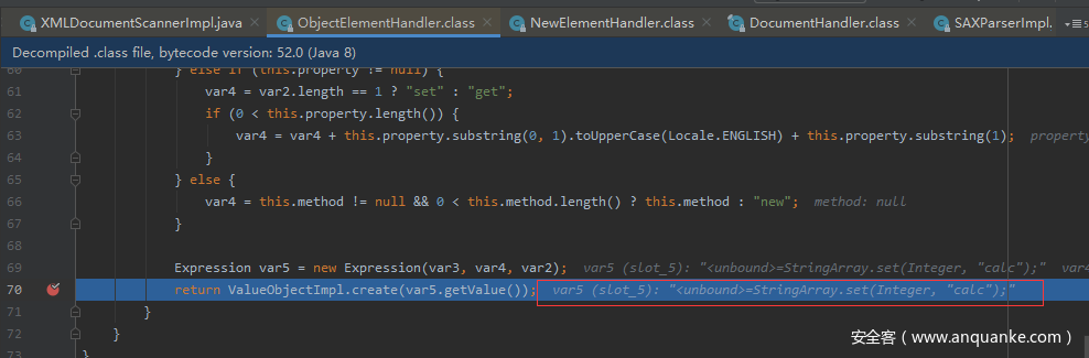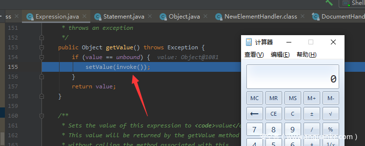 可以看到解析xml文件的时候有解析到calc字符,继续跟进。
