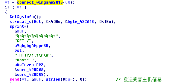 如果连接成功则开始搜集系统信息并拼装成HTTP GET请求,发送到C&C服务器的ldtvtvqs/accept.php?页面: