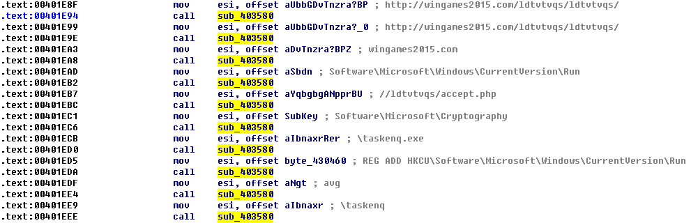 伪装成Office Word文档的病毒程序最终会在C:\intel\logs目录下释放执行mobisynce.exe,mobisynce.exe运行后首先会对程序中的加密字符串通过与单字节秘钥相加解密出需要使用的字符串: