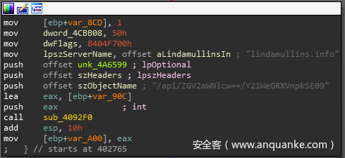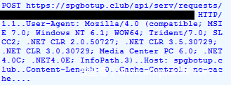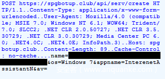 默认情况下,恶意软件一旦受到保护,就会与一个硬编码的主C&C网站进行通信,这些网站在不同的样本(spgbotup[.]club)中会有所不同。如果恶意软件没有得到第一个网站的响应,就会联系攻击者硬编码的额外的备份C&C网站(lindamullins[.]info)。这可能是攻击者实施的一种机制,以处理他们必须经历的基础设施更改的情况。
